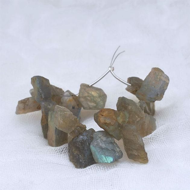 複雑な色を反射する美しいラブラドライトのラフナゲット。クロウクロウリングとの相性もなかなかいいですね。