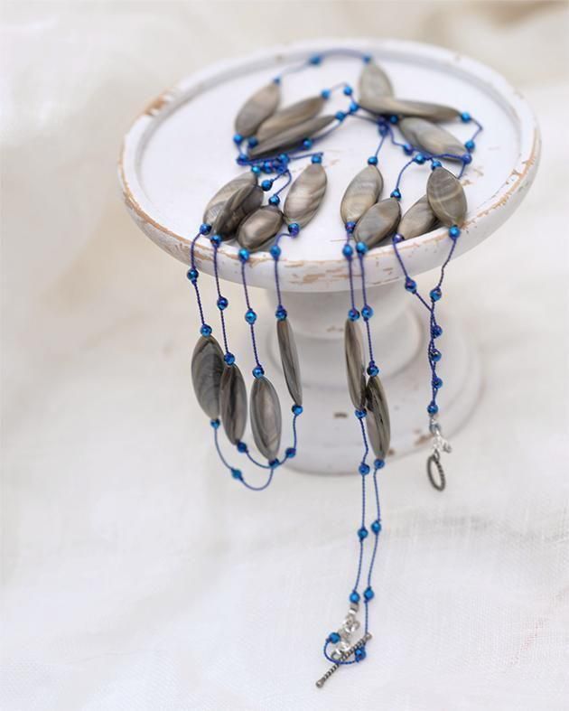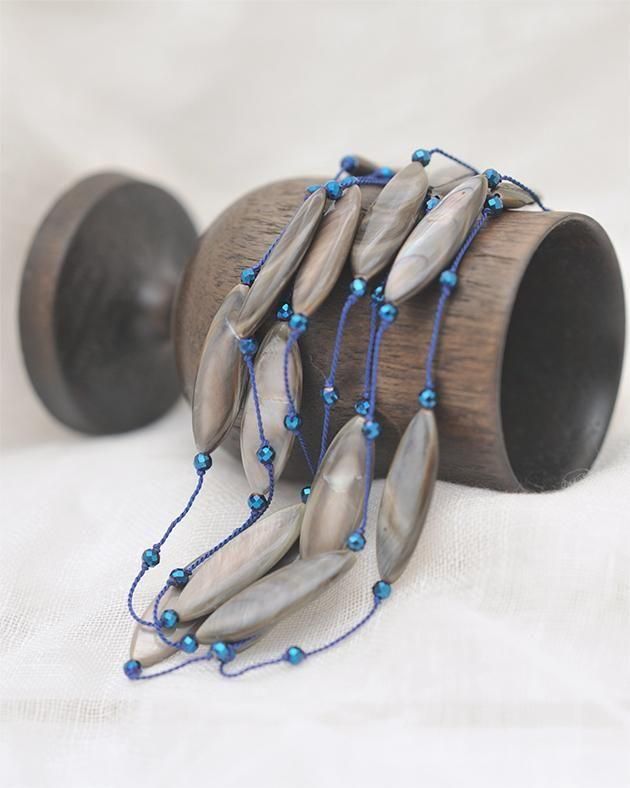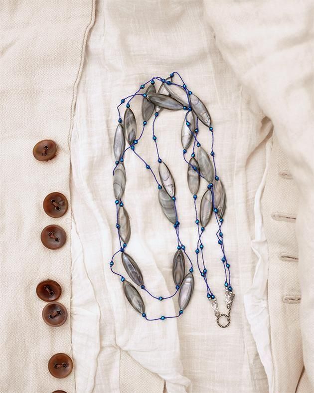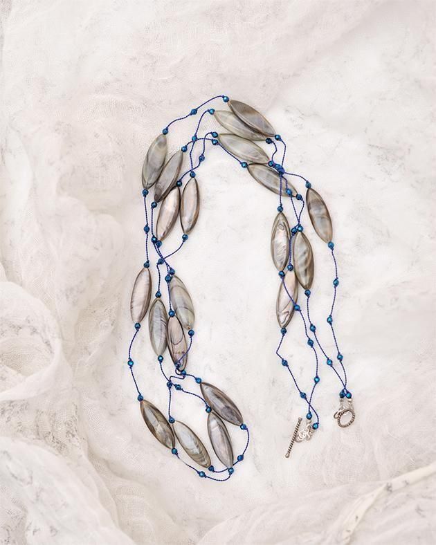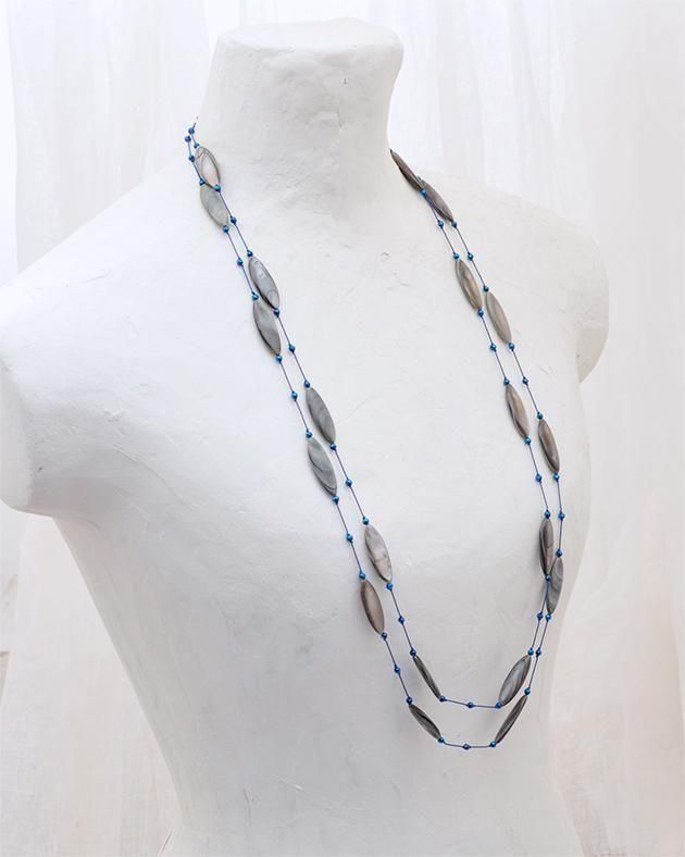 麻のワンピースやトップスに。この2連の[ディサンテ2 ]は、シンプルなスタイルに華やかさを添えてくれるネッツクレスです。