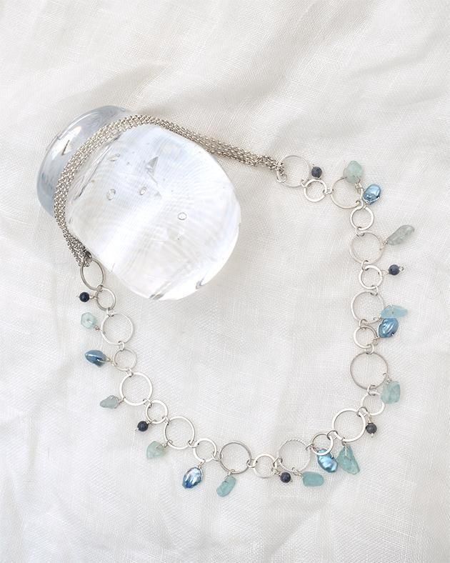 (素材) ブルースポンジサンゴ、アクアマリン チップス、ケシパール ブルー、シルバーリングパーツ 大、シルバーリングパーツ 中、カニカン 、丸カン 小、丸カン 大、ラウンドチェーン シルバー、アーティスティックワイヤーノンターニッシュブラス0.5、アーティスティックワイヤーノンターニッシュブラス0.4