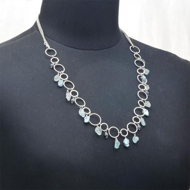 また、このネックレスは、ビーズバランスのワイヤーワーク