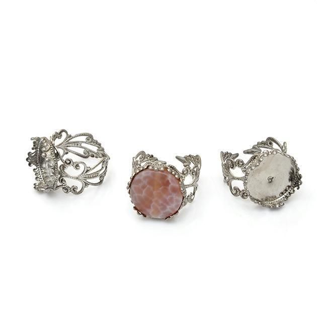 φ15mmの天然石にジャストフィットするアンティークテイストのリングベース。TL0194ジュエリースーパーグルーなどの背着剤で天然石を固定してください。。