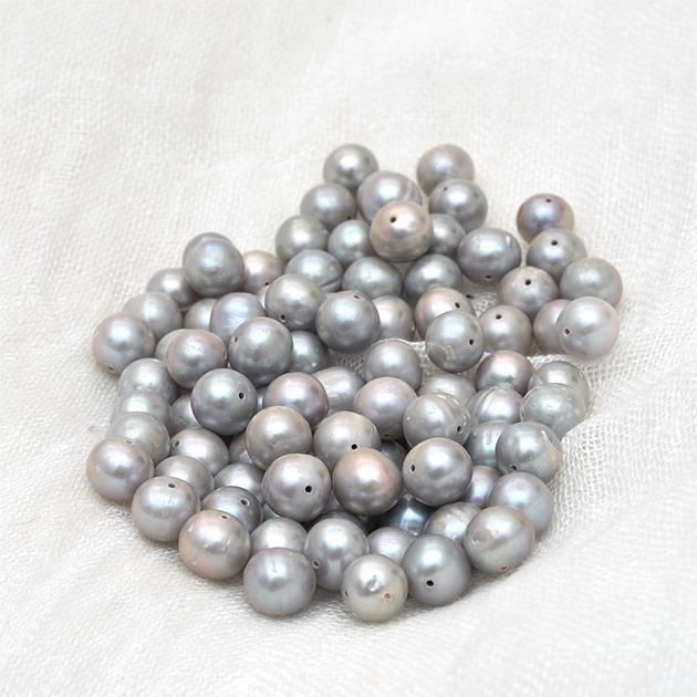 比較的整ったラウンドに近い形の淡水パール。連の中でアクセントをつけるのに使ってみたい。