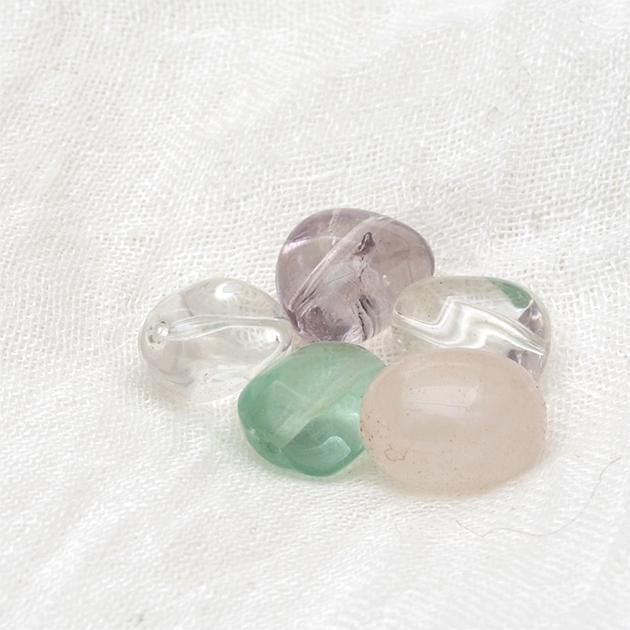 クリスタルクオーツ、ローズクオーツ、フローライト、ムーンストーンをパックにした大粒のミックスストーン。