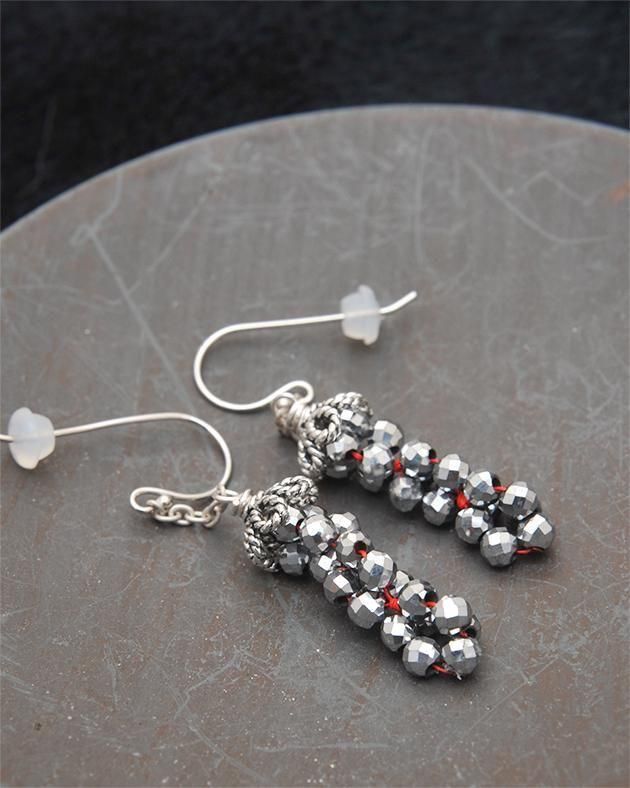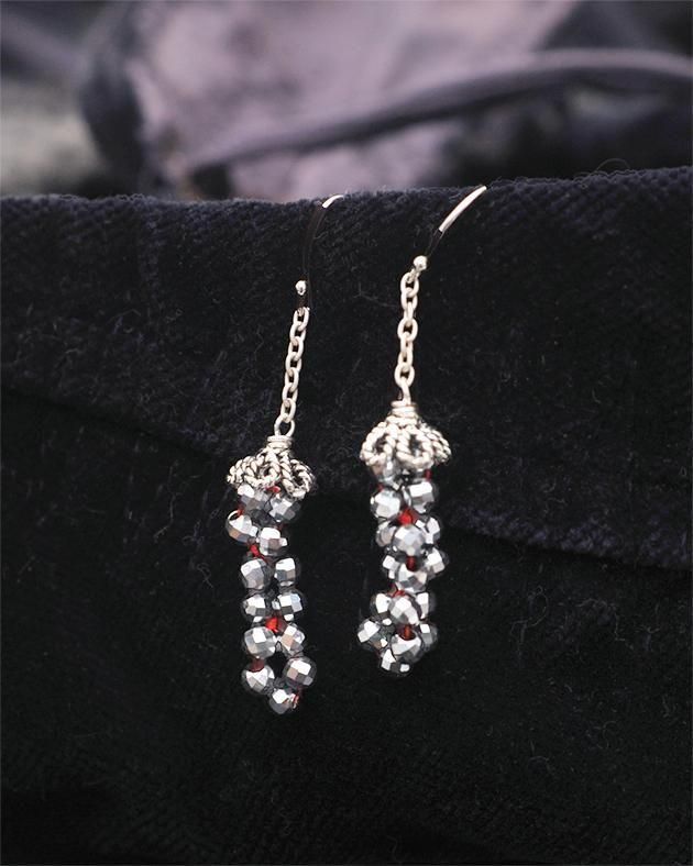 (素材) ヘマタイト シルバーコーティング3ミリカット 、6フラワーキャップ、ワイルドファイヤー0.2 レッド、アーティスティックワイヤーノンターニッシュシルバー0.5、ビンテージオーバルチェーン、ピアスパーツ(SV925)+ピアスキャッチ